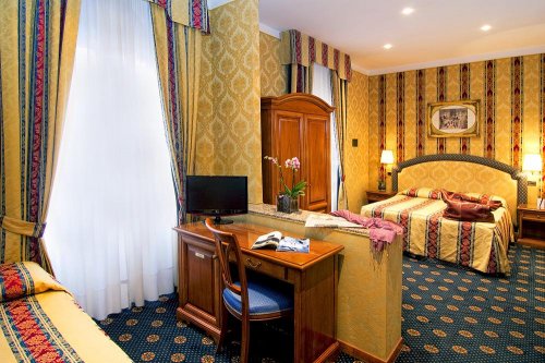 Le camere Triple hanno tre letti separati oppure un letto matrimoniale ed un letto singolo e sono dotate di linea telefonica diretta, minibar, TV color LCD satellitare, aria condizionata, cassaforte privata, connessione Wi-Fi a Internet, servizi privati con doccia o vasca.