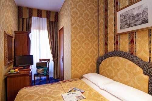 Le camere Singole sono dotate di linea telefonica diretta, minibar, TV color LCD satellitare, aria condizionata, connessione Wi-Fi a Internet, servizi privati con doccia.