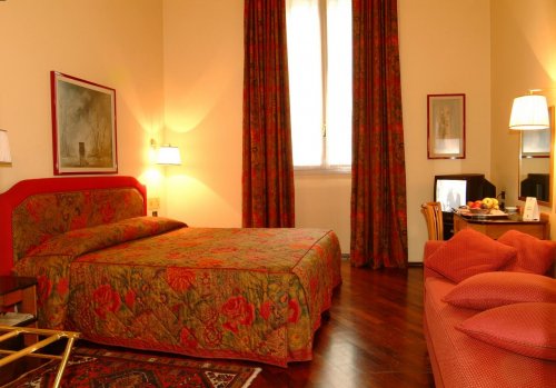 Le camere, estremamente silenziose e rifinite con pavimenti di pregiato parquet, sono dotate di biancheria in puro lino, TV color satellitare, Sky TV, frigobar, aria condizionata, cassetta di sicurezza, bagno privato con asciugacapelli, set di cortesia.