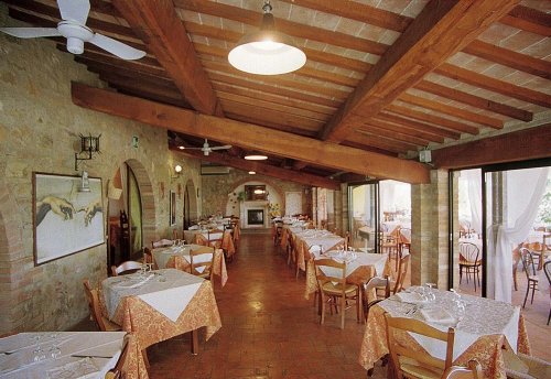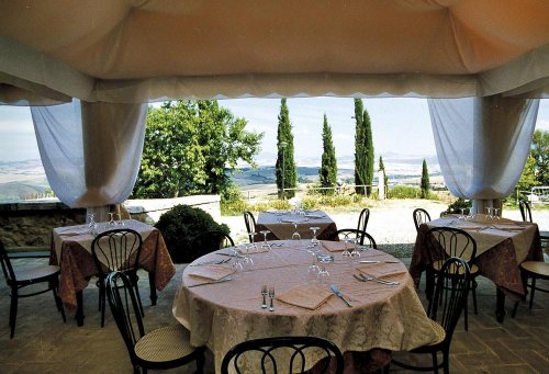 Il Ristorante "La Taverna del Barbarossa", all'interno del grande giardino, in un casale del 1200 con incomparabile vista sulla Val D'Orcia, propone le specialità della tipica cucina toscana a base di ingredienti scelti di alta qualità.