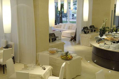 La colazione propone ottimi prodotti come croissant dolci al miele o al cioccolato, pane tostato, 3 tipi di cereali biscotti, yogurt naturale e alla frutta, vari tipi di marmellata e di miele, frutta fresca di stagione e succhi di frutta, latte, tè, caffè, cappuccino, cioccolato caldo, diversi tipi di formaggio, salumi nostrani come prosciutto crudo e cotto, salame, mortadella e pancetta.