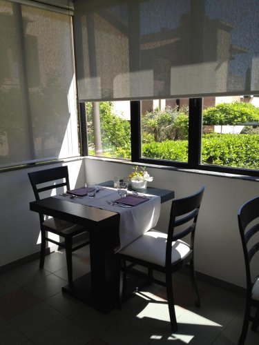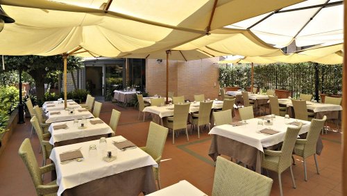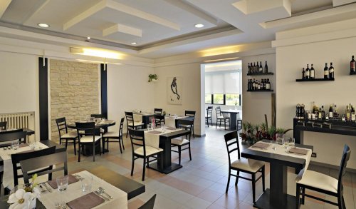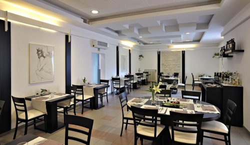 Il Ristorante al piano terra dispone di una comoda sala interna e di uno spazio all'aperto presso il grazioso giardino.