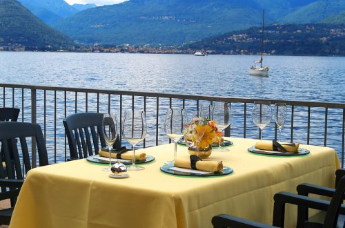 Durante il periodo estivo viene allestita la suggestiva veranda per mangiare cullati dalle onde del Lago.
