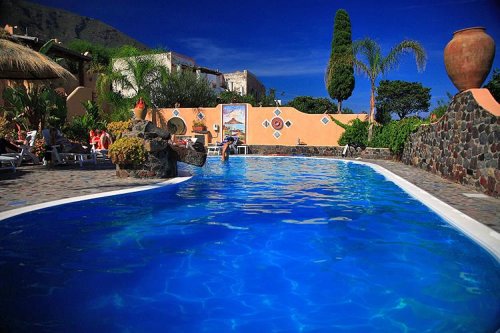 Mamma Santina" è un Hotel boutique tre stelle e nasce dalla ristrutturazione dell'antica casa di famiglia realizzata nel rispetto dello stile tipico eoliano con muri in pietra, geometrie che si alternano tra linee e archi, "Pulera" con le nicchie per accogliere la luce delle lanterne, "Bisuoli" e terrazzi rivestiti da antiche maioliche colorate.