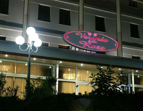 La Veranda delle Rose offre inoltre la cornice ideale per colazioni di lavoro, aperitivi, Cocktail, buffet, cene aziendali, eventi e serate a tema con pianobar.