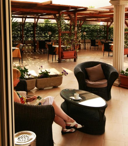 L'ampia gamma dei servizi comprende ricevimento 24 ore su 24, soleggiata e fiorita terrazza dotata di sdraio, Bar, servizio lavanderia, parcheggio privato e spazio di sosta per i pullman.
