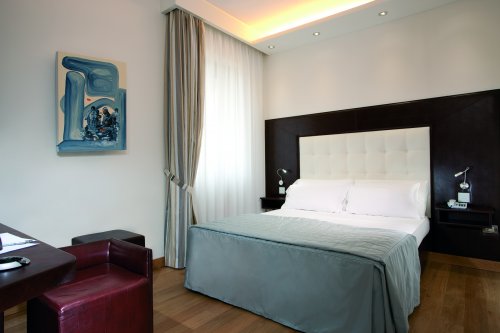 Le camere, spaziose ed elegantemente arredate, sono dotate di TV color satellitare, connessione Wi-Fi a Internet, telefono con linea diretta, aria condizionata, frigobar e bagno privato con doccia e asciugacapelli.