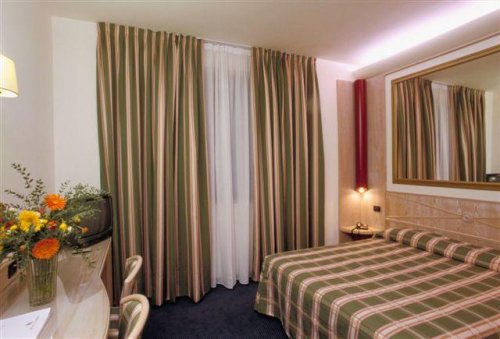 Le 96 camere, modernamente arredate e completamente ristrutturate nei materiali e negli impianti, sono dotate di TV color satellitare, Sky TV, aria condizionata, telefono con linea diretta, cassetta di sicurezza, connessione Wi-Fi a Internet gratuita, bagno privato con doccia e asciugacapelli.
