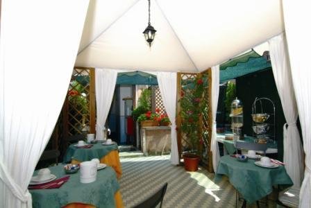 Nella splendida terrazza fiorita è possibile rilassarsi e consumare la colazione nei mesi più caldi dell’anno.
