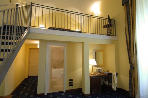 Le camere Deluxe, situate al primo piano, si articolano su 2 livelli, con zona giorno e bagno al piano inferiore, zona notte al piano superiore.
