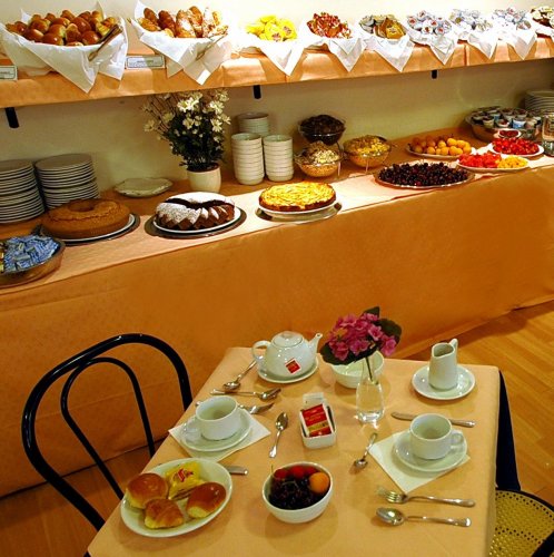 Una ricca colazione a buffet viene servita nell'apposita sala dalle ore 7.00 alle ore 10.00.