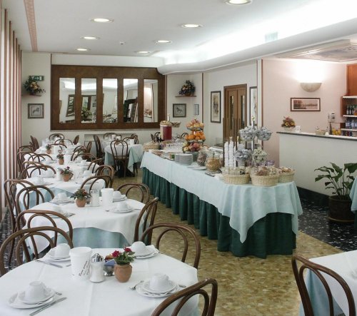 La Sala Colazioni "Colombo", con una capienza massima di 50 persone, al mattino offre un ricco e abbondante buffet a base di dolci, marmellate, cioccolata, croissant freschi e ripieni, cereali, succhi di frutta, yogurt, ma anche crackers, fette biscottate, pane scuro, paté di carne o di prosciutto cotto, formaggini, burro, bibite fresche o bevande calde.