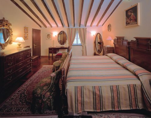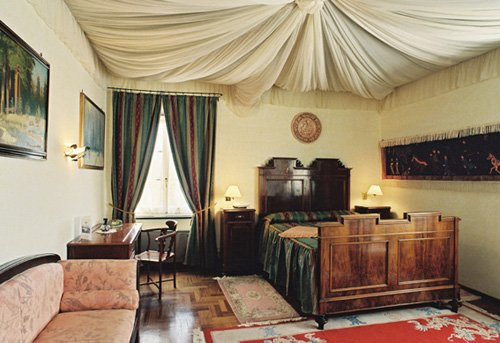 Nei piani superiori e nel seminterrato dell'ala est si trovano 27 camere piccole ma molto graziose (quasi tutte doppie) dotate di bagno ed arredate con mobili antichi ed eleganti tessuti.