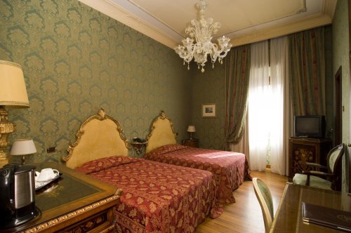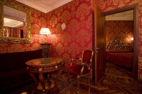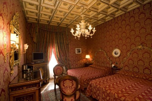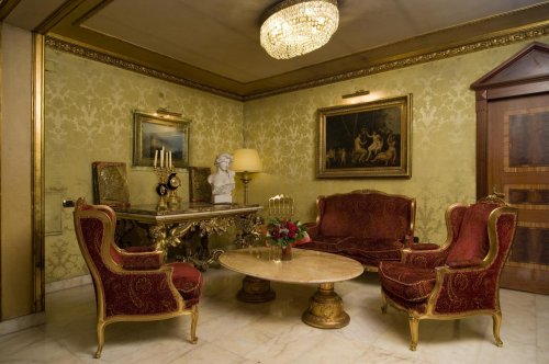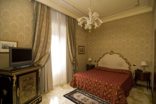 Le camere Superior sono arredate con damaschi alle pareti e mobili in stile Luigi XV e servizi privati in marmi preziosi.