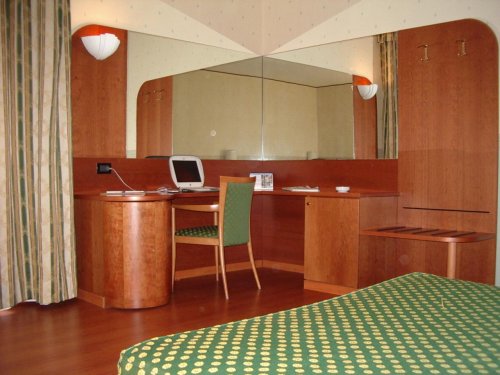 Le camere doppie e matrimoniali offrono spazio, tranquillità e tutti i comfort per il relax dell'uomo d'affari: aria condizionata, TV color satellitare, frigobar, ampia scrivania, bagno privato con box doccia e asciugacapelli.