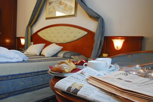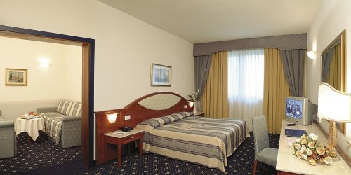 Ampie ed eleganti, le camere dell'hotel dispongono tutte di TV color satellitare, minibar, telefono diretto, connessione ADSL gratuita a Internet, bagno privato con vasca o doccia, asciugacapelli.