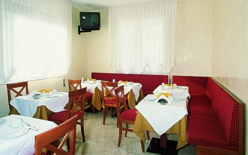 L' hotel dispone di una piccola ed accogliente sala colazione che in primavera ed estate si estende all'adiacente e fiorito giardinetto esterno.