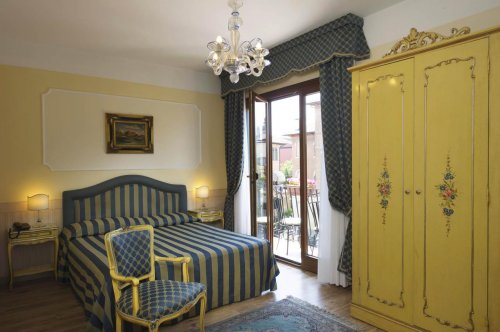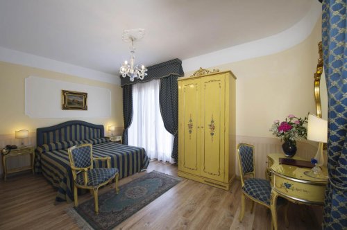 Tutte le camere sono arredate in stile veneziano con colori vivaci e splendidi lampadari di vetro di Murano, dotate di aria condizionata, telefono con linea diretta, minibar, cassetta di sicurezza, TV color satellitare, connessione Wi-Fi a Internet, terrazza panoramica, bagno privato con asciugacapelli.
