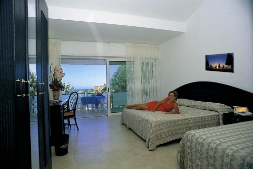 Le camere Standard, immerse nel verde del villaggio, sono provviste di ingresso indipendente e terrazzino con vista sulla campagna o sul mare.