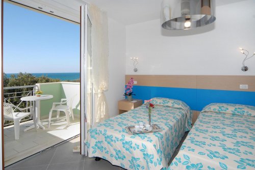 Le nuovissime camere Panoramic situate al terzo piano, si differenziano dalle altre per il balcone con splendida vista sul mare, gli arredi moderni, il TV color LCD e il fornitissimo frigobar.