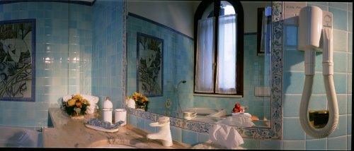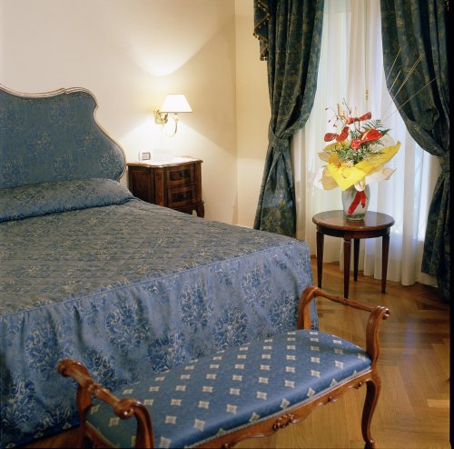Le camere, ampie e confortevoli, sono dotate di TV color satellitare, Pay TV, frigobar, telefono con linea diretta, connessione a Internet, radio, bagno privato con vasca o doccia e asciugacapelli.