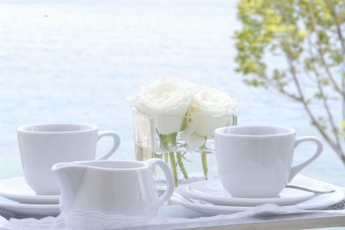 Durante la stagione estiva è piacevole fare colazione all’aperto sulla terrazza accompagnati in sottofondo dal dolce rumore delle acque del lago.