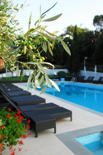 Incastonata nel verde del parco, circondata dagli ulivi, si trova la piscina, gioiello che offre relax e freschezza per i momenti rigeneranti degli ospiti.