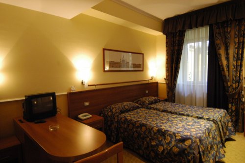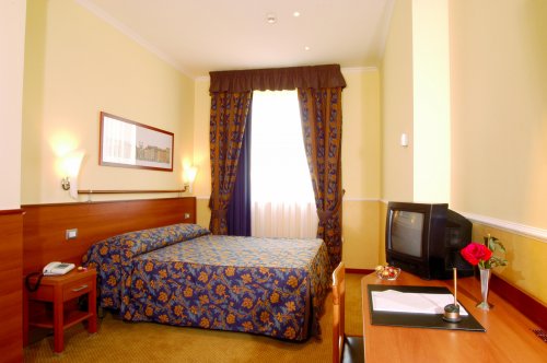 L'hotel dispone di 52 camere arredate con cura ed eleganza, dotate di TV color satellitare, frigobar, telefono con linea diretta, cassetta di sicurezza, aria condizionata, bagno privato con vasca o doccia e asciugacapelli.
