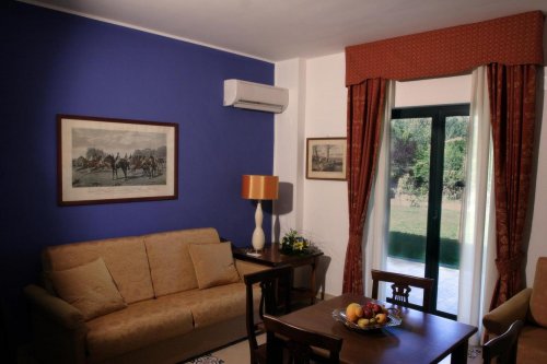Il complesso dispone di un'ampia hall con piccola biblioteca, sala TV, internet point, piscina per adulti con zona idromassaggio e solarium attrezzato, piscina per bambini, maneggio per prove ed escursioni a cavallo, campo di tiro con l'arco, campo di calcetto, campi da tennis, teatro all'aperto e parcheggio privato interno.