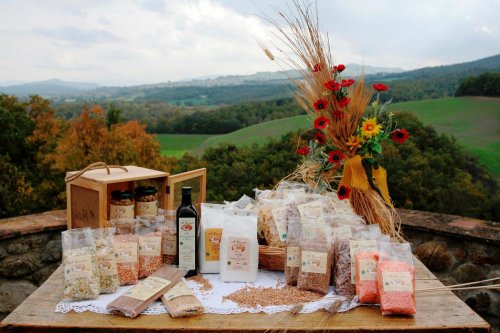 In fattoria si producono l'olio, la pasta, i cereali, i legumi, il pane lievitato naturalmente e cotto a legna, le torte, i biscotti, i succhi di frutta, le marmellate e il miele, le farine di grano e di farro, i legumi e tanti altri prodotti naturali.