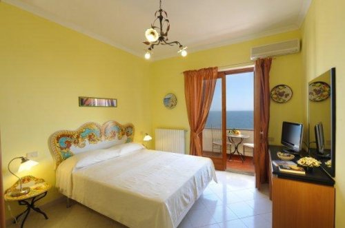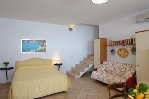 - Appartamento Casa Rossana composto da camera da letto matrimoniale con balcone sul mare, angolo cottura, bagno rifinito con mattonelle in ceramica vietrese dipinte a mano.