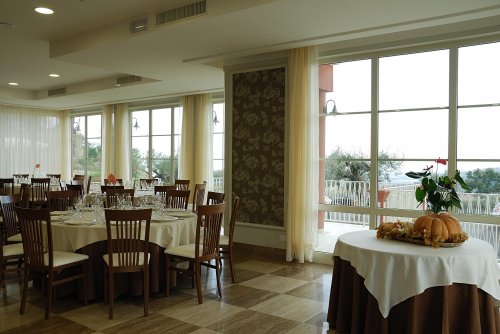 Il ristorante interno "Peonia" con vista panoramica offre prodotti della cucina di mare e di terra del territorio.