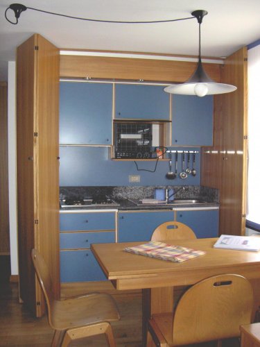 Tutti gli appartamenti arredati in stile montano, sono dotati di balcone (o giardino se al pian terreno), angolo cottura, fornetto elettrico, frigorifero, TV color, telefono con chiamata diretta, bagno privato.