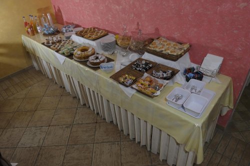 É offerta al mattino una ricca colazione continentale a buffet, con prodotti sia dolci che salati. Le torte e le ciambelle tipiche della buona tradizione abruzzese sono fatte in casa, e frutta e marmellate sono prodotti locali.