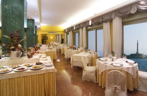 L'albergo ha un ristorante panoramico con vista sullo stretto. Vengono proposti piatti della cucina regionale con particolare attenzione sulla cucina locale.