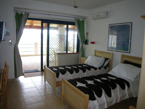 Alcune stanze sono provviste di patio esterno con tavolino e sedie.