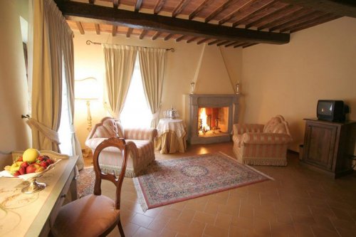 Splendida Suite per 2 persone con vista sulla piscina e su Cortona, situata al primo piano della struttura e dotata di bagno turco per due, doccia con cromoterapia, doppia vasca idromassaggio Jacuzzi e spazioso letto matrimoniale King Size.