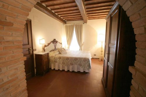 La camera al secondo piano gode di una splendida vista sul giardino e sulle colline di Cortona.