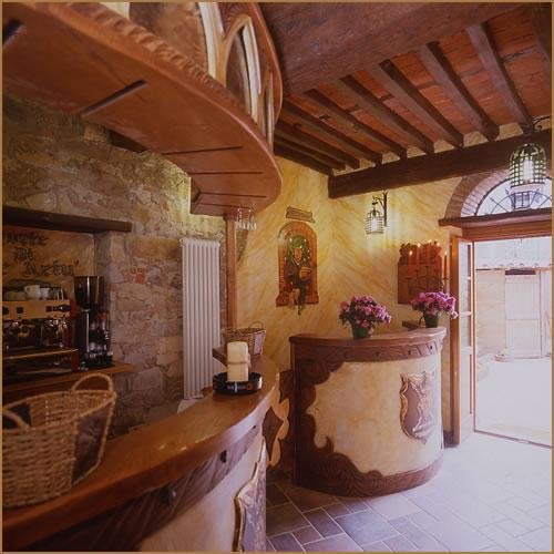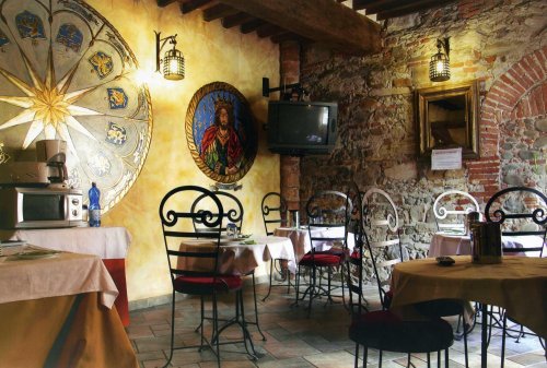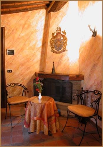 Tutti gli ambienti sono caratterizzati da elementi architettonici in stile medievale, dalla Sala Colazioni affrescata alla piacevole corte esterna.