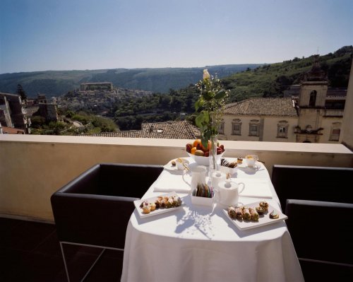 Fiore all'occhiello della Dimora è la grande terrazza panoramica sulla quale gli ospiti hanno la possibilità di gustare a colazione le prelibatezze della migliore tradizione culinaria Siciliana o di godersi un indimenticabile tramonto sorseggiando un vino delle più esclusive etichette locali.