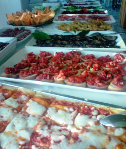 Il ristorante offre sempre un ampio buffet di antipasti e verdure oltre ai dolci preparati in casa.