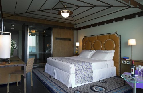 Gli interni si distinguono per il design essenziale e la funzionalità dei servizi; l'offerta ricettiva comprende 98 camere, tra cui quella espressamente costruita per il presidente Obama, un ottimo Ristorante, un'area Bar, la splendida piscina all'aperto, l'attrezzato Centro Congressi, e l'esclusiva SPA con trattamento di Talassoterapia.