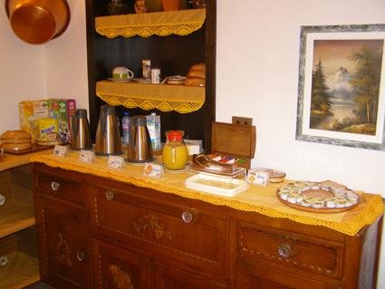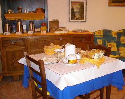 Nel salone con camino ogni mattina viene servita una colazione a buffet confezionata nella caratteristica cucina dal soffitto a botte in mattoni.