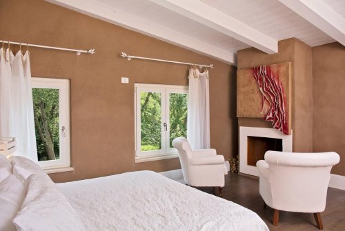 Le camere superior sono frutto di un progetto di interior design che coniuga gli elementi tipici naturali del casolare di campagna al lusso dei dettagli moderni ma mai troppo impersonali. Il tutto viene esaltato dalla presenza di un caminetto.