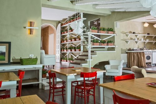 Lo stretto rapporto con il territorio si può percepire e toccare con mano anche nella scelta dei materiali e degli arredi con cui il Casale La Pampa è costruito ed ornato: sono stati scelti pietra naturale locale, legno, ferro battuto, coppi in argilla e vernici con pigmenti naturali.
