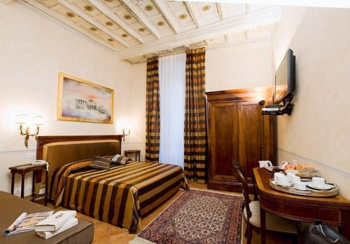 Le camere, spaziose e luminose, sono arredate con pregiati mobili di antiquariato e tendaggi coordinati. Ristrutturate recentemente, offrono tutti comfort di una struttura moderna mantenendo intatte le caratteristiche originali d'epoca, come i soffitti a cassettoni decorati a mano con motivi floreali.