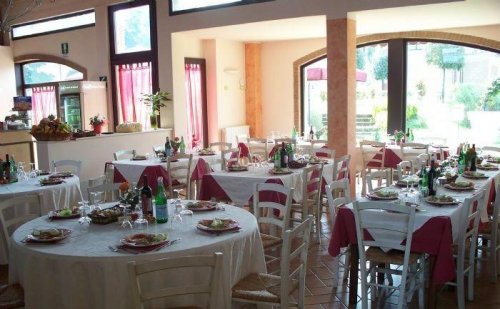 Al centro della struttura un piacevole bar-ristorante-pizzeria con forno a legna è a disposizione per colazioni, pranzi, cene ed eventi con cucina tipica toscana serviti all'interno di un ampio salone oppure nella caratteristica cornice esterna con vista piscina.