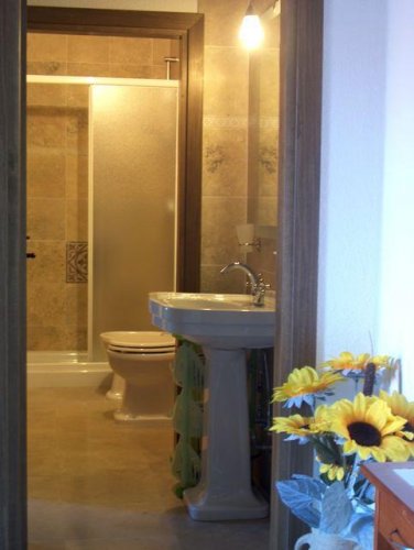 - appartamento "Oliveto" da 3 posti letto, più un lettino, composto al piano terra da giardinetto privato attrezzato, camera matrimoniale, soggiorno con cucina e divano letto singolo, bagno privato con doccia.
