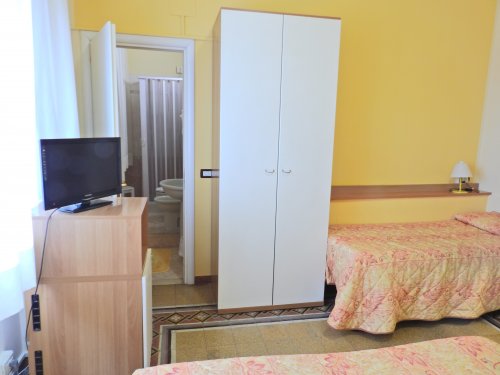 Solo le matrimoniali con bagno in comune non dispongono di aria condizionata e frigo bar.