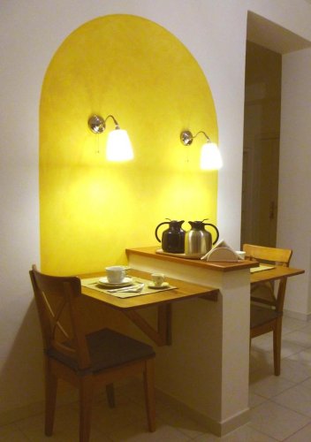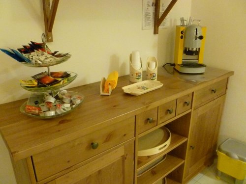 Lo spazio Buffet, dove vengono servite le colazioni mattutine, offre una vasta scelta di prodotti sempre freschi ed è attrezzato con frigo, macchina per il caffè e tostapane.